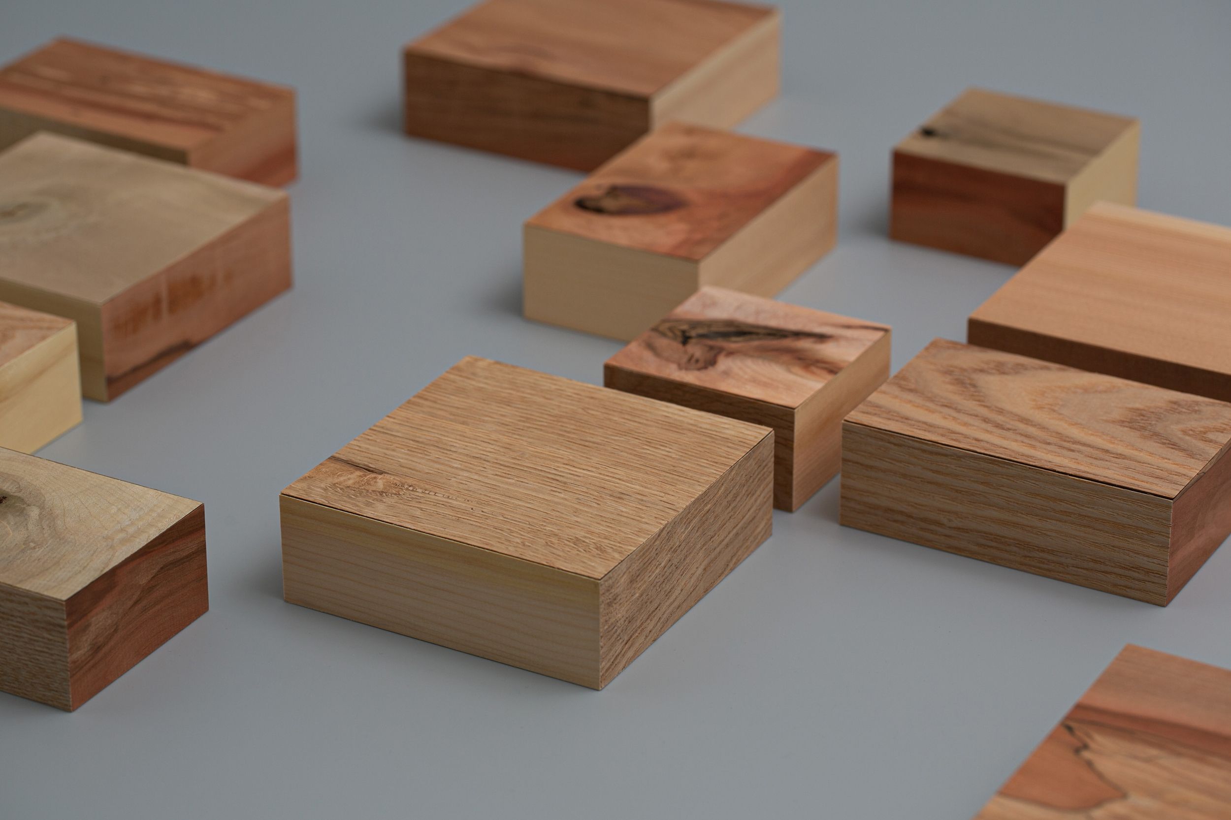 タモ、ケヤキ、カツラ、米ヒバ、ホオなどを使用。