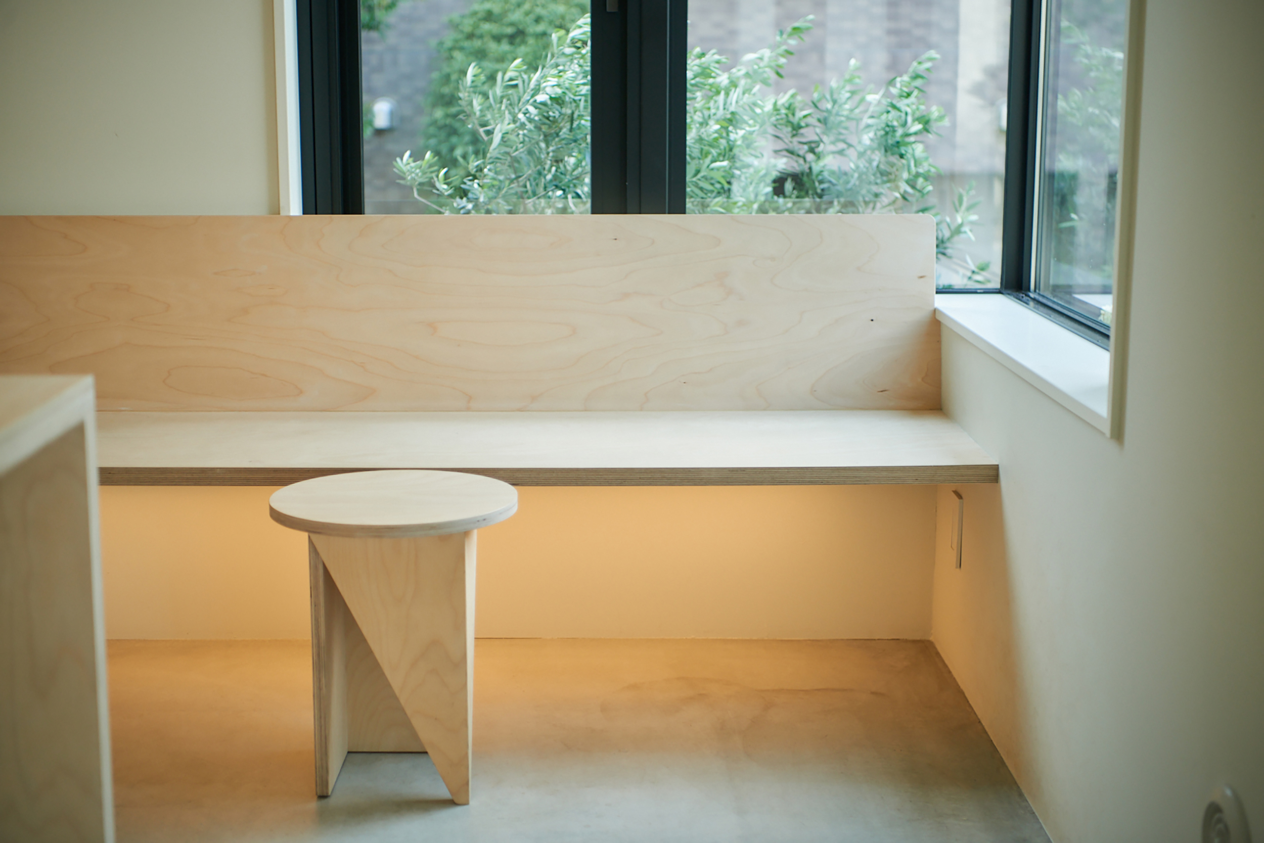 洗足池にあるAOI COFFEEの為にデザインしたスツール兼サイドテーブル。