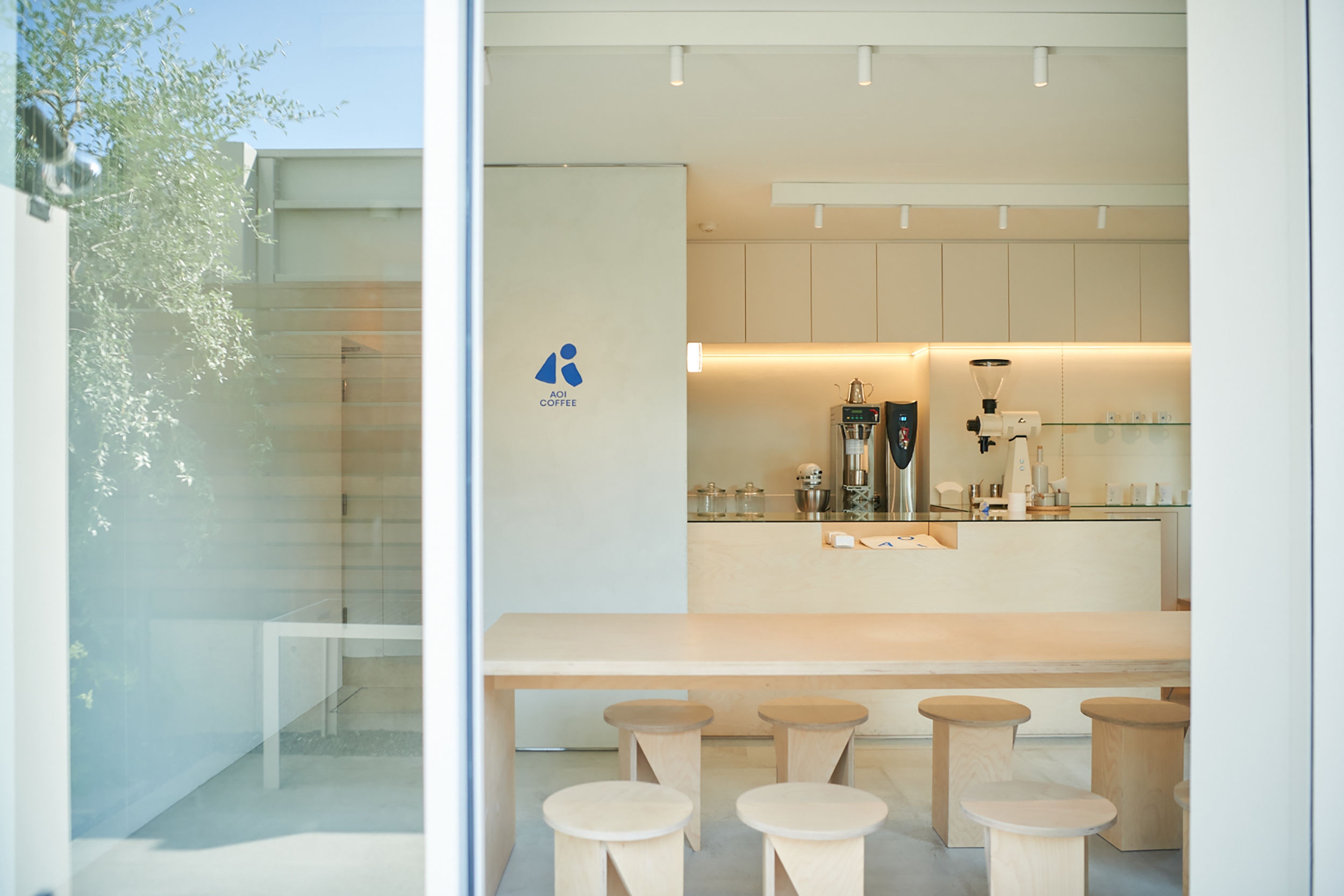 A stool & side table designed for AOI COFFEE in Senzokuike, Tokyo.